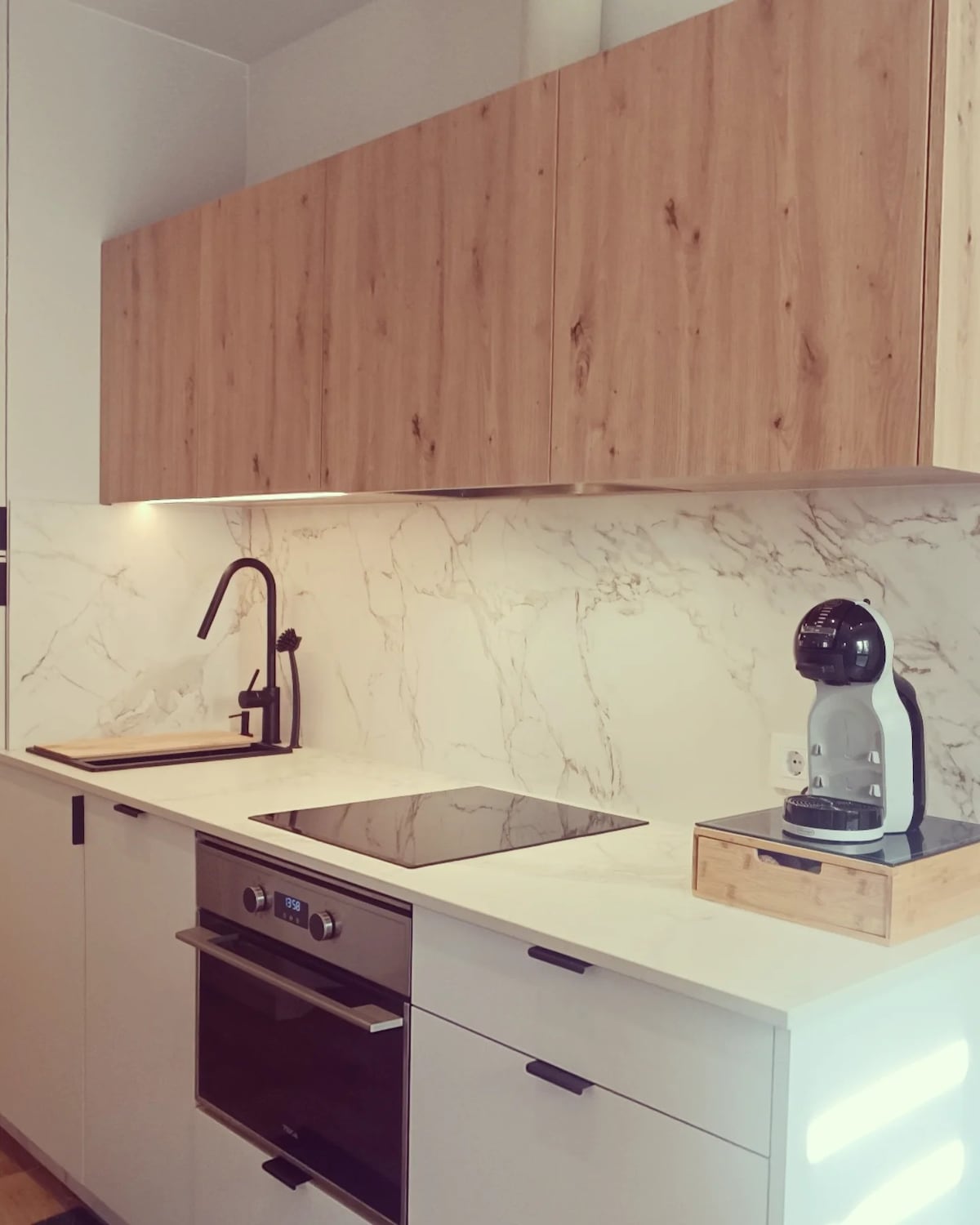 Luxury apartment with double bedroom, separate kitchen, living-dining room, bathroom with bathtub, balcony overlooking green area and covered garage space. Discover the charm of Santiago de Compostela and rest comfortably in our fully equipped apartment, located less than 15 minutes walk from the city center. The apartment has high-quality furniture and appliances and is located next to the bus and train station, in a quiet, green and central area.