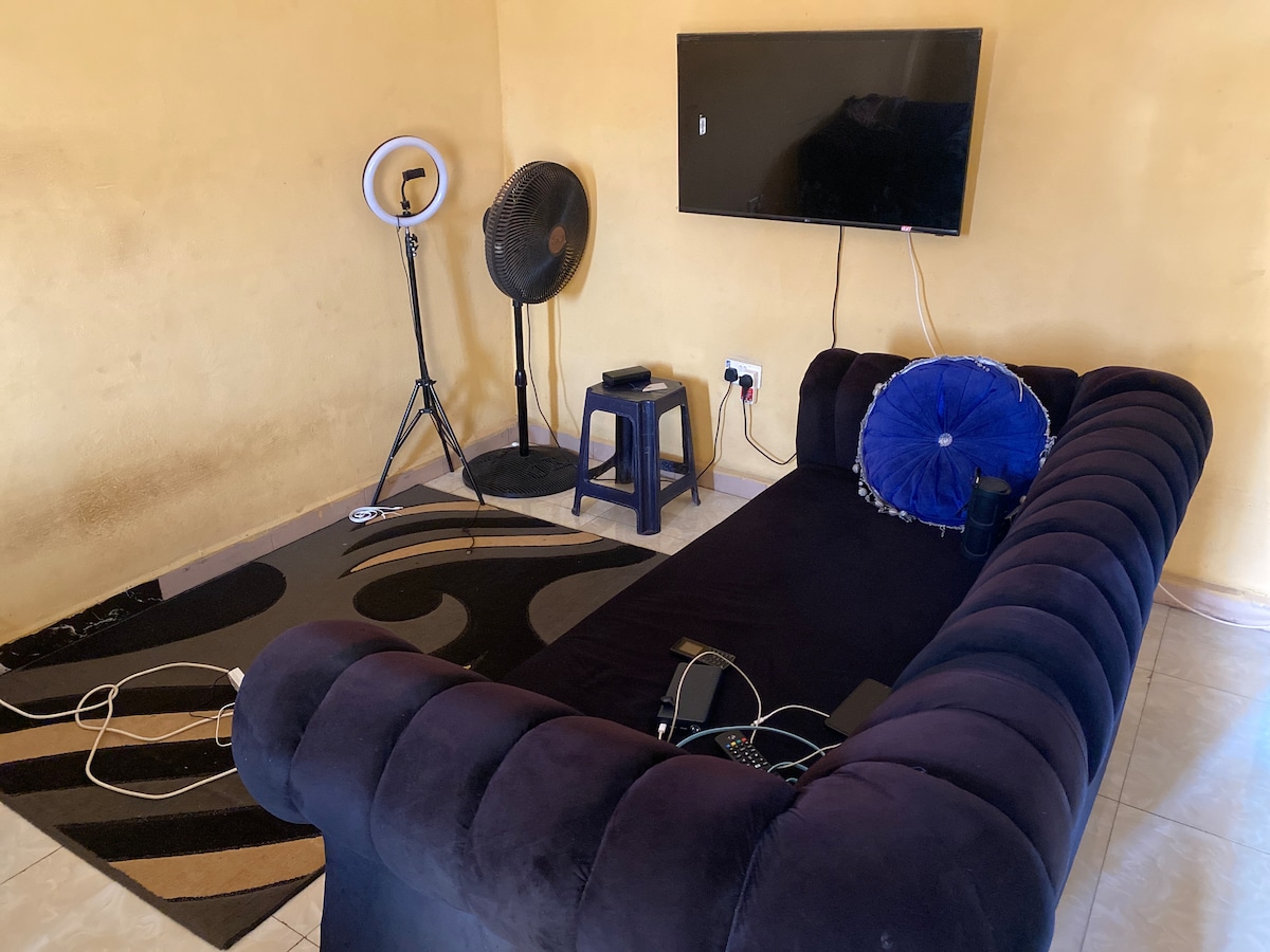 I am happy to host you , welcome ! This modern 3-bedroom apartment is your ideal retreat you would love to enjoy : - ACs in all rooms - Fast WiFi ,Cozy living area, - Cotton blinds for privacy - Well-equipped kitchen , - Soft bedding & ample storage ,Clean bathrooms with modern finishing . - Gated and secured compound - Solar light - Clean water Great for families, professionals & travelers. Comfort, style, and convenience await you