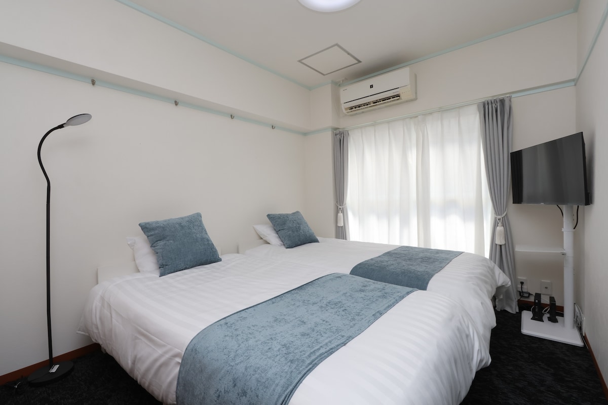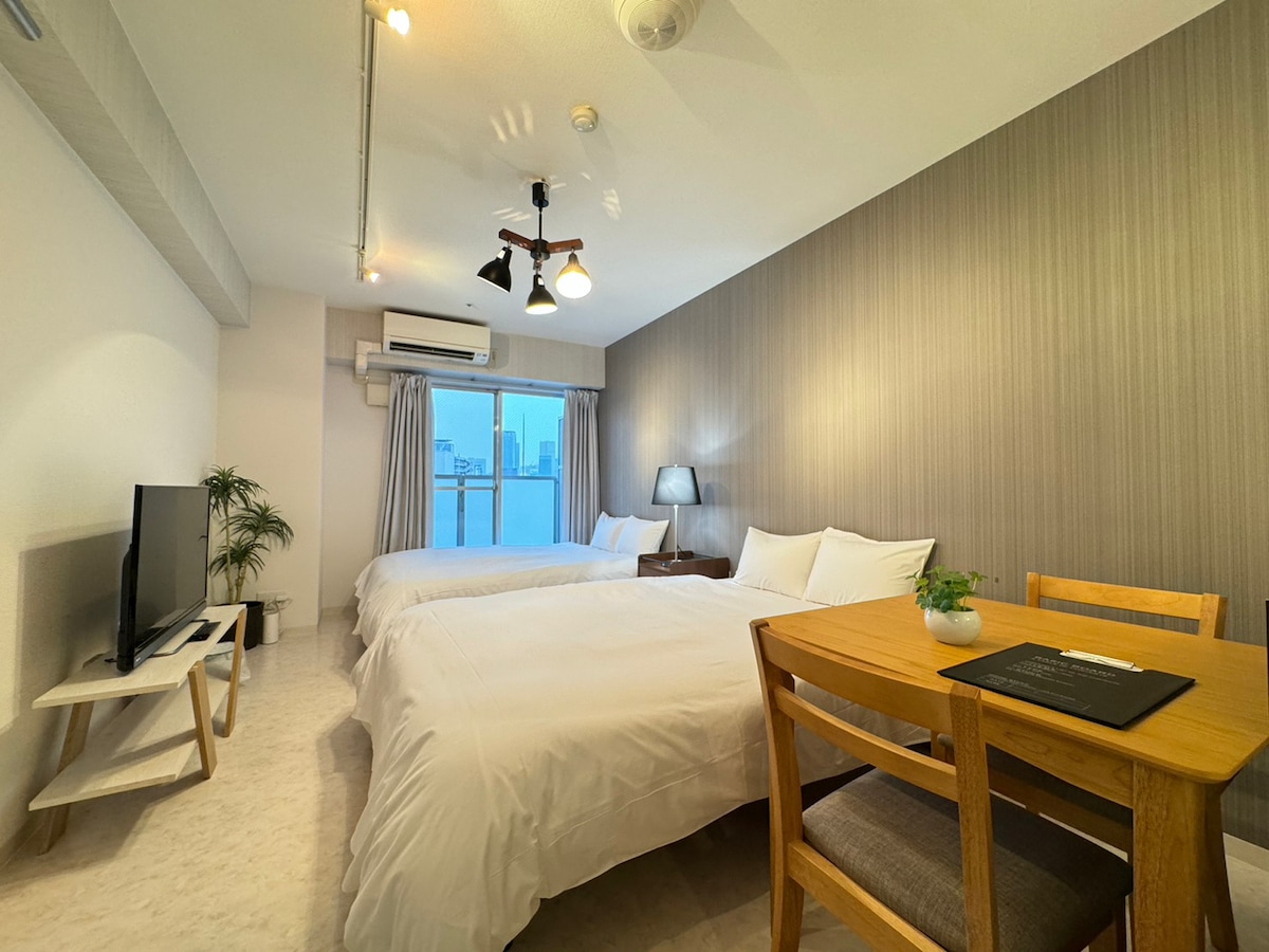 DDC 梅田/双大床房最大4人/车站8分/直达梅田难波新大阪心斋桥/花火大会