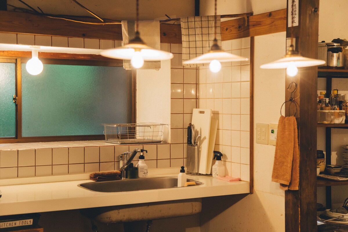 The inn has a total of eight private rooms on three floors. There is a large kitchen and dining area on the first floor, and private rooms on the second and third floors. The building is also equipped with its own washing machine and dryer. The facility is also equipped with comfortable facilities for mid- to long-term sightseeing and business trips. The kitchen on the first floor is equipped with a household refrigerator, freezer, microwave, electric kettle, cooking utensils and dishes.
