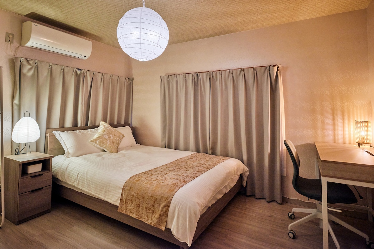 入住這間位處中心地段的房源,全家到哪都方便。 房內配置兩張加大雙人床,適合家人、朋友一同入住 床距舒適,動線保有獨立空間。最多可住5人 開放式廚房備有電磁爐、鍋具與碗盤,想吃家常菜、日式簡單料理都不是問題 吧台連接生活與用餐空間,不論是一杯早晨咖啡,還是一頓晚餐,一切都剛剛好。 洗手台與衛浴獨立設計,幾個人一起住也能保有自己的步調 提供藍芽音響,在日本的夜晚聽著音樂、泡個熱水澡是旅途中最放鬆的片刻。 房內備有投影機,可輕鬆連接常用的數位串流平台 洗衣機、空氣清淨機、熨斗與寬敞衣櫃一應俱全,你需要的,我們都準備好了 空間剛剛好,適合一個人靜靜地在吧台工作,也適合和朋友或家人一起住上幾天 自在相處,各自舒適。