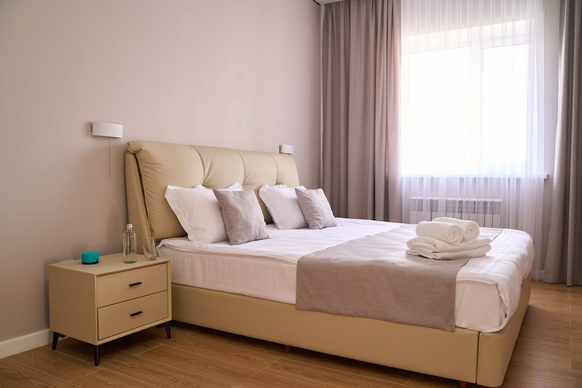 Наша уютная квартира в скандинавском стиле находится в тихом, безопасном районе. В пешей доступности магазины, торговые центры Asia Mall, Астана, Орал, остановки, продуктовые рынки, фитнесс центр, кафе.