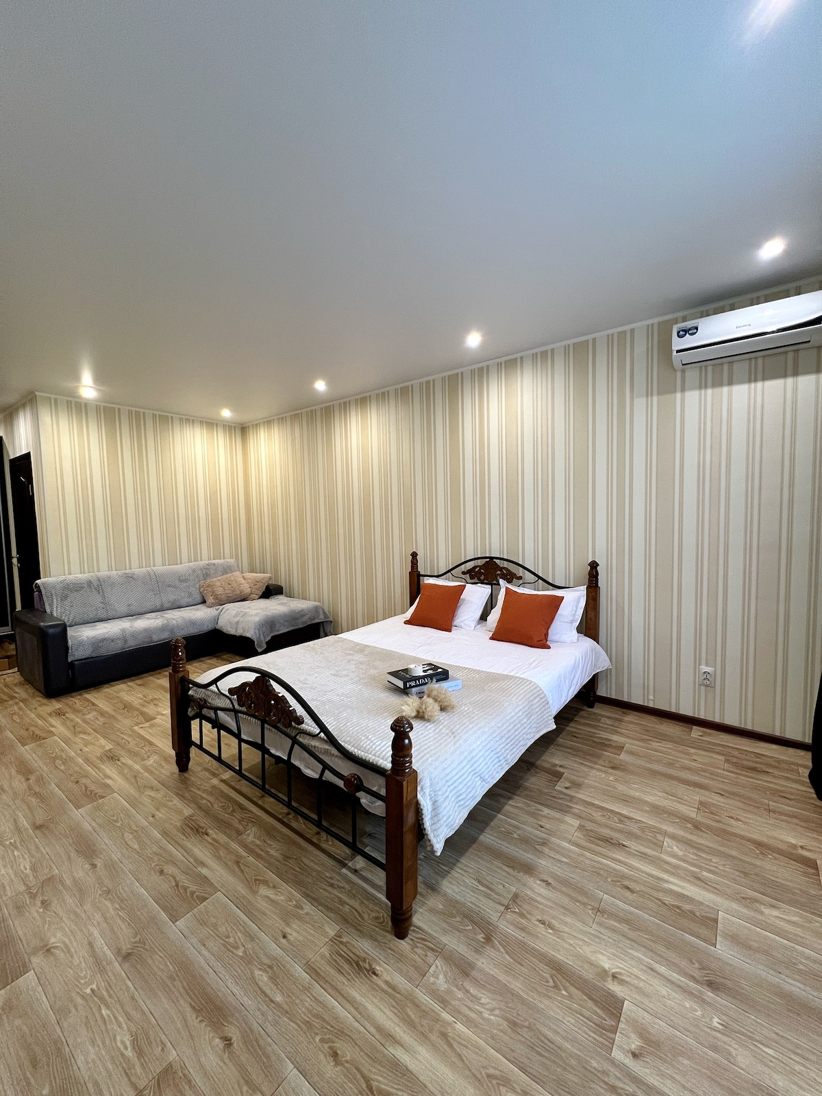 Стильная двухкомнатная квартира с характером в самом центре, рядом с исторической частью города, в 5-10 минутах хотьбы многочисленные заведения, музеи, рестораны (Barrel, Eldivino, Befor, Coffee Original), офисы *** -Просторная квартира с кухня-гостиная и отдельная спальня -Стиль, уют и чистота -Тропический душ -Ортопедический матрас -Плотные шторы blackout -Имеется кровать и большой раскладывающийся диван -Фильтр для воды -Безключевой доступ -Новый ремонт