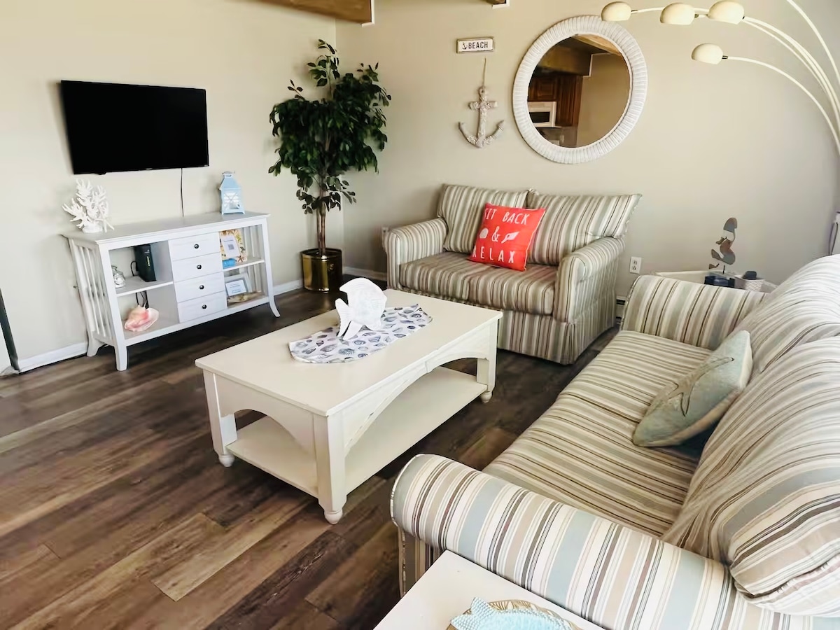 Welcome to our cozy 2 bedroom condo in South Seaside Park! Walk to see sunrise at the beach or sunset at the bay. Our unit is a block from the pristine Whitesands beach by Island Beach State Park(IBSP). Walk along the beach towards the serenity of IBSP where land and sea wildlife can be spotted. Go crabbing at the nearby fishing piers. Explore the Seaside Heights boardwalk or walk to dine at locally famous restaurants. Come stay at our condo! Comfortable beds and modern amenities await!