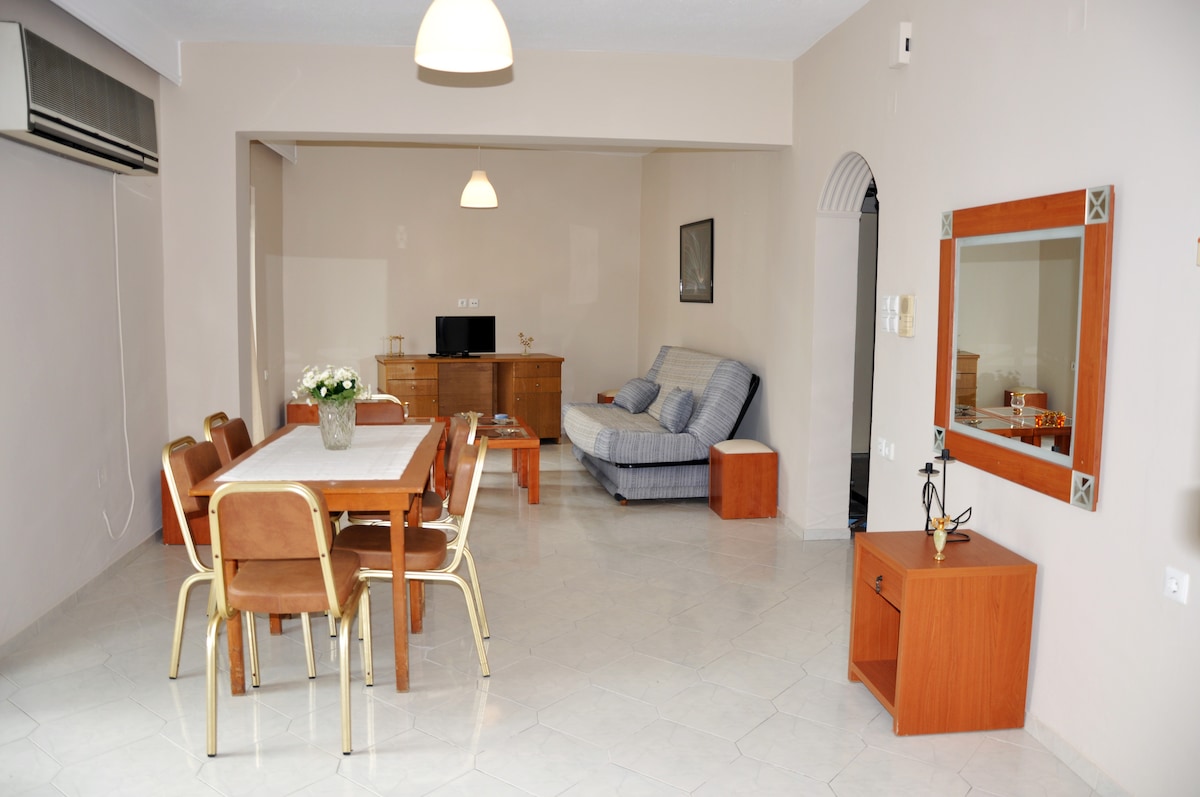 Fully renovated and modern apartment located next to the beach that you can visit with only 2 minutes walking. You can enjoy your stay and have fun with friends or family, right next to beautiful and fully organized beach. Lot's of restaurant's and beach bar's in the neighbοrhood will offer you a pleasant vacations. Not far from the center of the town that you can visit on foot or bicycle.