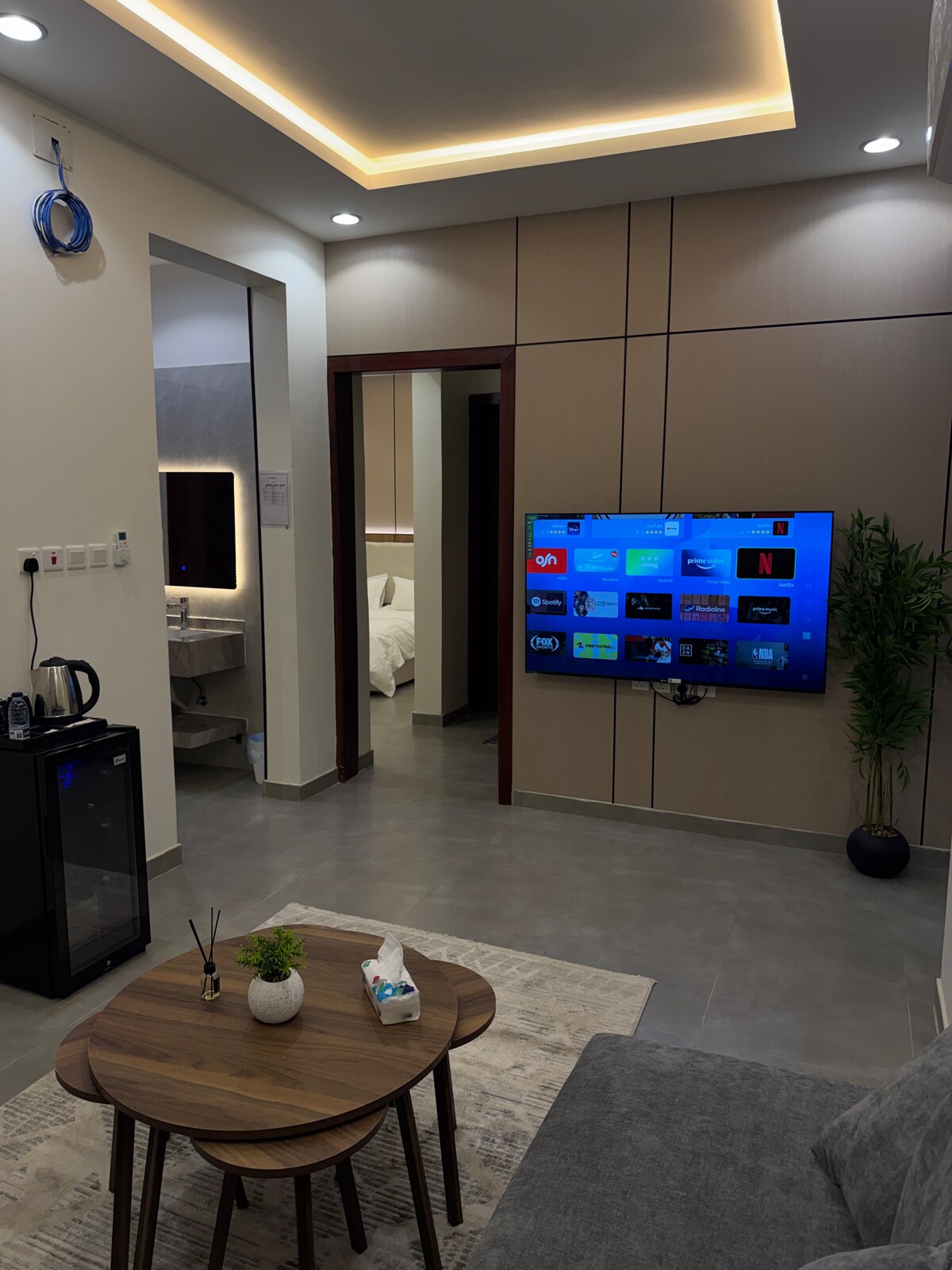 شقة فندقية فاخرة -تسجيل دخول ذاتي تقع في قلب أبها على الحزام الدائري بإطلالة جزئية على الجبل الأخضر ودوار الضباب تفاصيل المكان : غرفة جلوس بتصميم أنيق وشاشة 75 بوصة بار لتحضير القهوة والإفطار الصباحي+ضيافة مجانية غرفة نوم بسرير ماستر ودورة مياة ومطبخ متكاملة نت مفتوح بسرعة 500mp اشتراك شاهدvip+شاهد رياضة اشتراك نيتفليكس + stc tv صممت من أجلك لتلبي جميع ما يحتاجه الضيف لتعيش تجربة فريدة ومميزة في أبها نتمنى لكم أقامة ممتعة …🤍