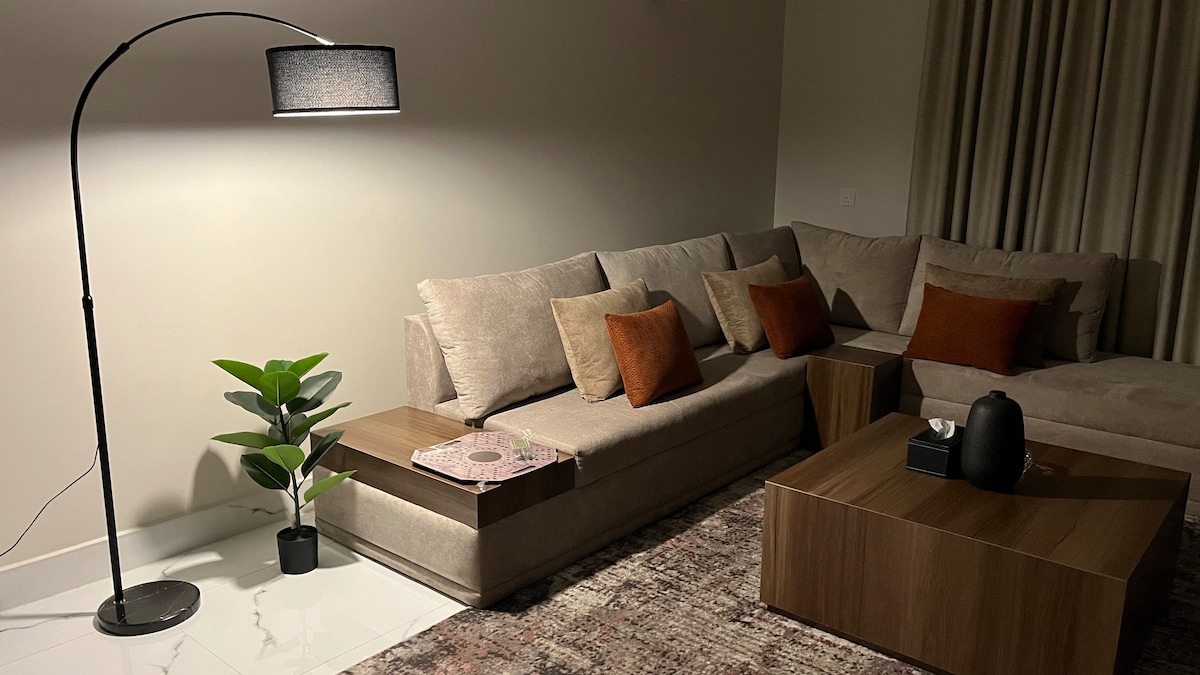 استمتع مع كامل العائلة في هذا المسكن الأنيق. الشقة باسلوب مودرن تتكون من غرفة نوم مجهزة بالكامل ، وصالة مجهزة بشاشة ٦٥ بوصة وركن قهوة بادواته . كنب للاسترخاء ، اريكة سرير . بوفية خدمة متوفر بجميع الخدمات . ادوات قهوة V60 . دخول ذكي وذاتي . غسول وشامبو وسليبرات ادوات نظافة . تتميز الشقة بالاسلوب الجميل والتصميم الهادئ والموقع المتميز بالقرب من المطار يبعد ٧ دقائق .