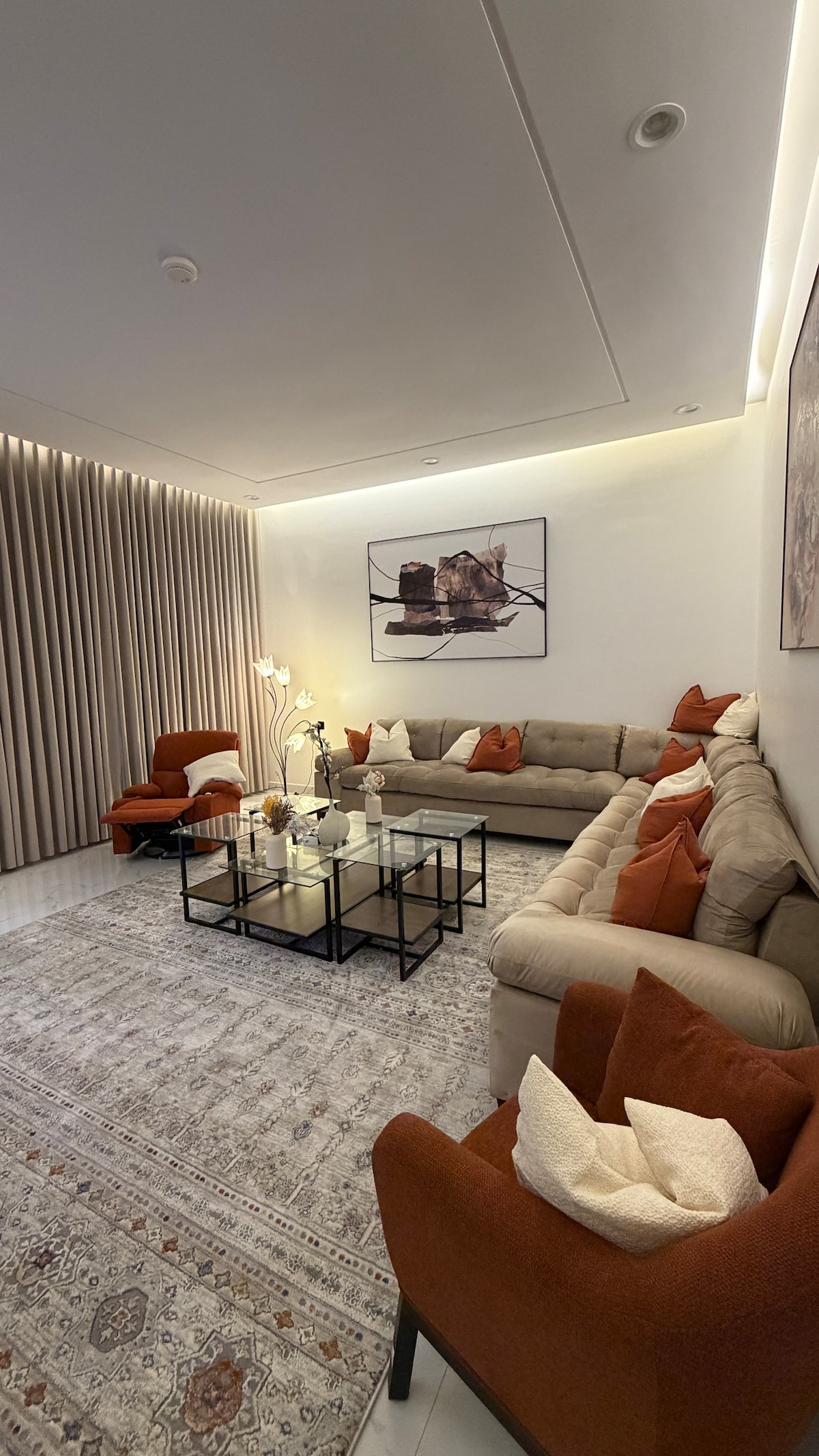 مرحبًا بك في شقتنا الفاخرة، التي تجمع بين الأناقة والتصميم الحديث والإطلالة المميزة على المدينة، مما يوفر إقامة استثنائية تتجاوز التوقعات. تتميز غرفة المعيشة المنفصلة الواسعة والمصممة بأناقة، بأرائك مريحة وتلفزيون ذكي للترفيه. توفر غرف النوم مراتب عالية الجودة للنوم المريح. تقع في قلب المدينة، وهي قريبة من المعالم السياحية والمطاعم. توفر شقتنا غرفة معيشة واسعة ومصممة بشكل جميل، مثالية للاسترخاء أو الترفيه. يتميز بتلفزيون كبير 65 بوصة 4K وأريكة مريحة ونت بسرعة 300قيقا، لجعل إقامتك أكثر متعة.