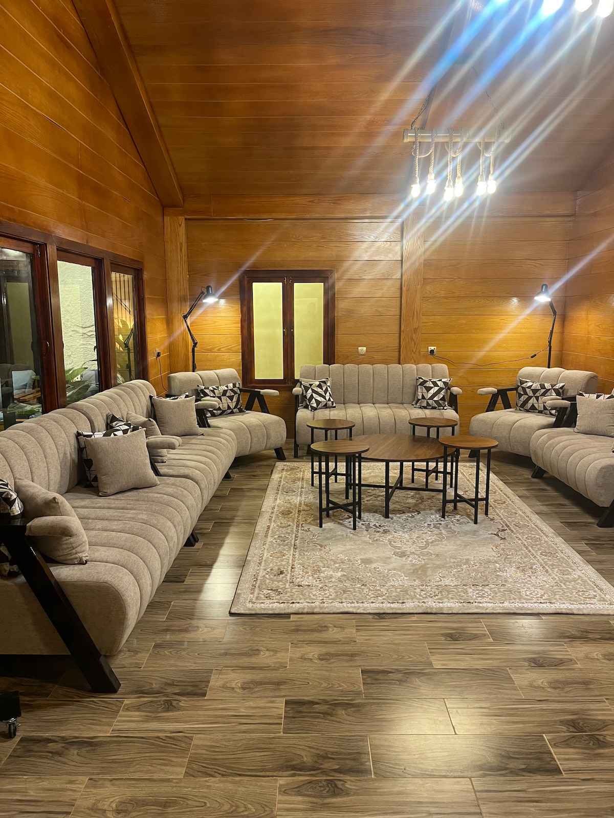 Discover a fully wooden luxury cabin designed for unforgettable stays. Enjoy a spacious living area with a 100” cinema screen, premium sound, and elegant furnishings. The open kitchen flows into a private indoor pool and jacuzzi. Upstairs features a master bedroom, extra room, cozy lounge, and a second bathroom. Perfect for families, couples, or anyone seeking a private, peaceful, and stylish getaway.
