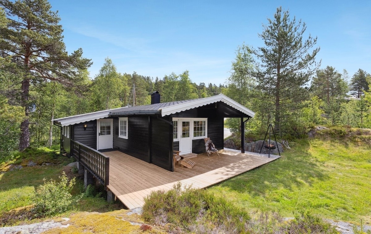 Hytte ved Bjørndalsvatn. Adresse er Bjørndalen 12 i Evje kommune. Koselig hytte med innlagt strøm og vann. Hytta ligger meget solrikt til i rolige fine omgivelser. Hytta inneholder stue, kjøkken, bad, 3 soverom, gang, flotte uteområder. Det er også en gapahuk en kan sitte i utendørs. Båt og fiskekort følger med og er inkludert. Gode fiske og bademuligheter. Det er nært til Evje og Setesdal. Bilvei helt fram til hytta. Det er dyner og puter, men ta med sengetøy og håndklær(kan leies om ønskelig).