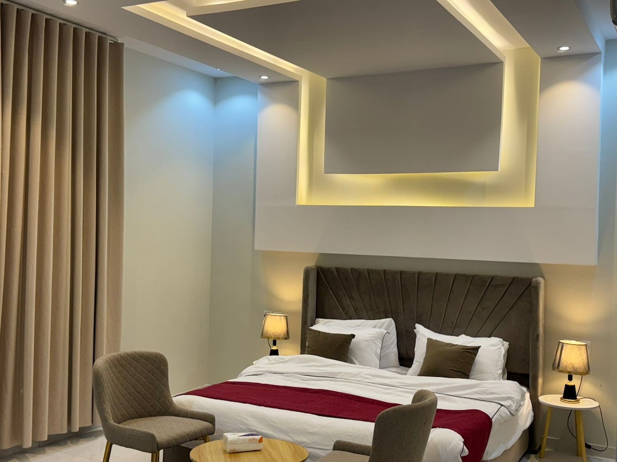 Experience unparalleled luxury in this uniquely designed apartment in Taif city. Located near Terra Mall and Jory Mall,The apartment includes three bedrooms: a master bedroom with a king bed, and two additional rooms each with two beds. It also features a luxurious massage chair, a fun-packed arcade machine,and an advanced sound system for an immersive experience , private entrance and parking .The interior is beautifully styled This exclusive retreat promises an exquisite and unforgettable stay