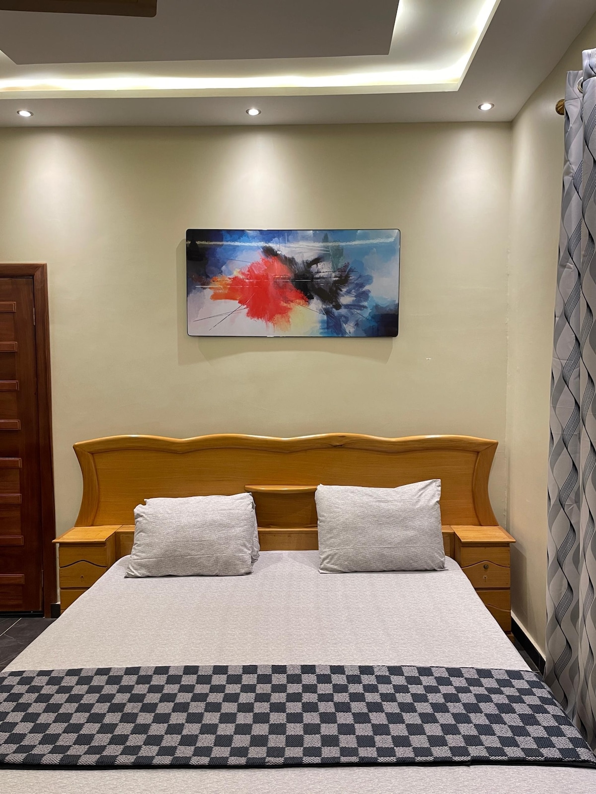 Fast internet from Starlink. Located in a gated neighbourhood in centre of Kumasi just 12 minutes from Kumasi Airport, 4.5 km to Baba Yara, 6 km to the Royal Palace and close to KNUST, this Scandinavian-inspired apartment connects well to the rest of the city. The estate offers easy access to street food, laundry, and a mall with restaurants and a rooftop pool. With 24-hour security, you can relax and enjoy your stay in peace. This space is perfect for both short-term and long-term stays.