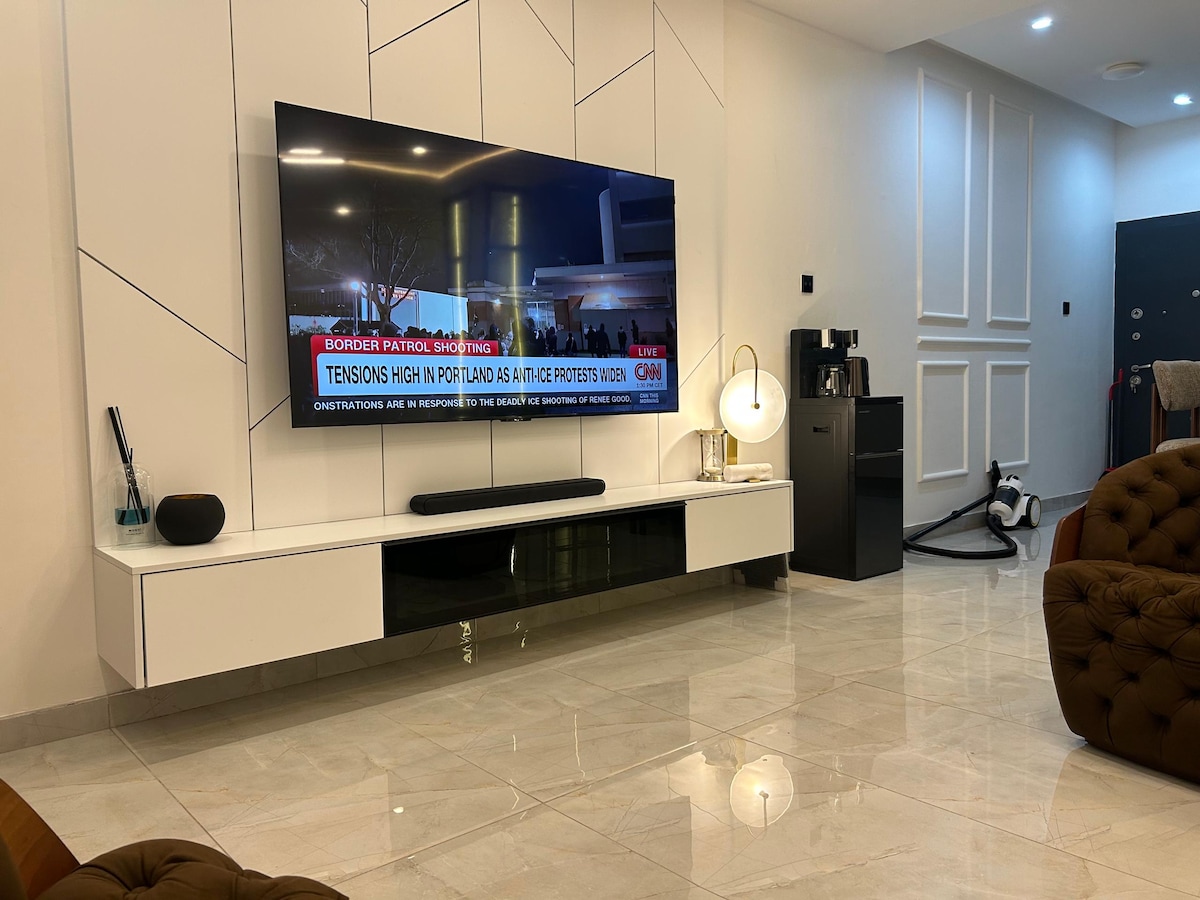 A modern , contemporary and stylish home designed for comfort and peace of mind . This is a 2 bedroom semi-detached entire house secured with private lock, security fence, CCTV to ensure your safety and privacy throughout your stay . The large compound is littered with fruit plants and flowers This is truly a comfortable home away from home. Bring the whole family to this great place with lots of room for fun.