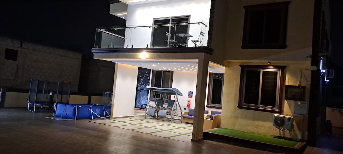 - Entire house to yourselves - Your own Private Cinema - 3 Bedrooms with Super King Size beds - 2 different Living Areas with a dining - Fully Equipped Kitchen - Washing Machine for your laundry - 24/7 CCTV Monitoring - 24/7 personal helper/assistant - Free secured car park - Each bedroom has its own balcony - Airconditioning Rooms - Free WiFi - Bed linen and towels Prempeh Int’l Airport is 9 miles from the villa. Escape from the noise in the city and come to this peaceful haven.