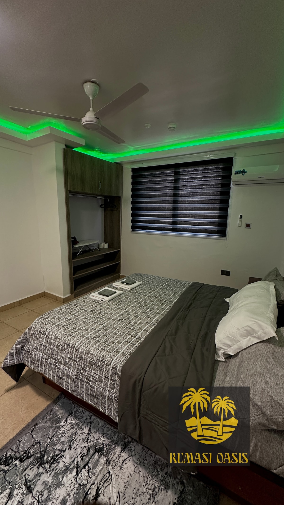 Welcome to this stunning condo. Our comfortable beds come fitted quality imported linens. The living spaces have A.Cs. Walk into the well organised office. The condo comes equipped with fast internet and back up power(not for ACs) . You will have local TV channels and Netflix . The kitchen is equipped with high end appliances, as well as, a washer-dryer machine for your laundry needs. We are located about 10 minutes from KNUST, 15 minutes from the airport. 20 minutes from downtown Kumasi