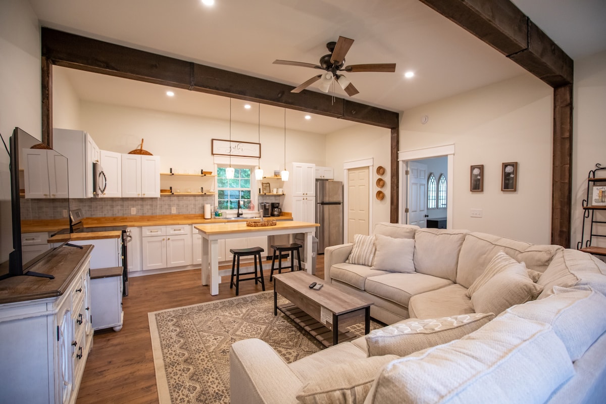 A family and pet friendly home away from home with character and charm in every corner. Centrally located to Wilkesboro, West Jefferson, and Boone in Deep Gap, NC you can be to Appalachian State University , the Blue Ridge Parkway, or multiple ski mountains in just minutes. The Air bee-N-bee is located in the Honey House where honey is processed and bottled. Maybe our hens will have some farm fresh eggs ready to share with you!