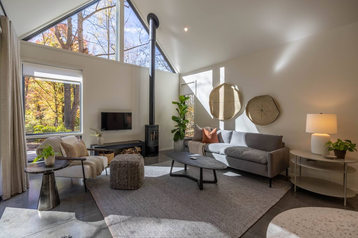 现代山间小木屋,带景观 • 距离市中心 3 英里