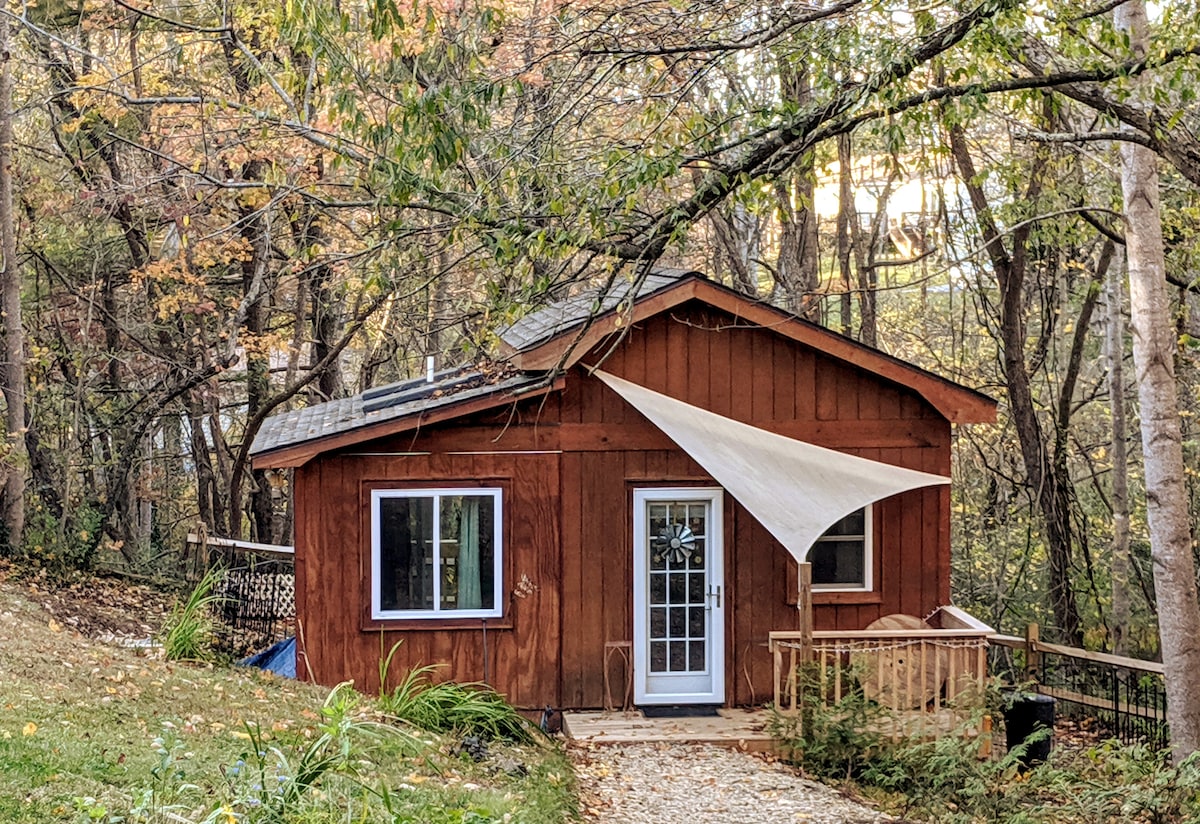 Quietly, hidden away under a canopy of trees in the Appalachian mountains, is one of East Tennessee's best-kept secrets - until now. Nestled above Sams Creek and Oberlin Falls, the Holyfield Hideaway sits on an ancient Indian and buffalo trail - later becoming the old wagon road connecting East Tn. to NC. The 630sq.’ cabin is furnished w/ antique brass headboard, king bed, queen sofa bed, dining table w/ 4 chairs, kitchen & bath w/ shower, connecting to an 800 sq.ft. deck.**dog friendly* limit 2