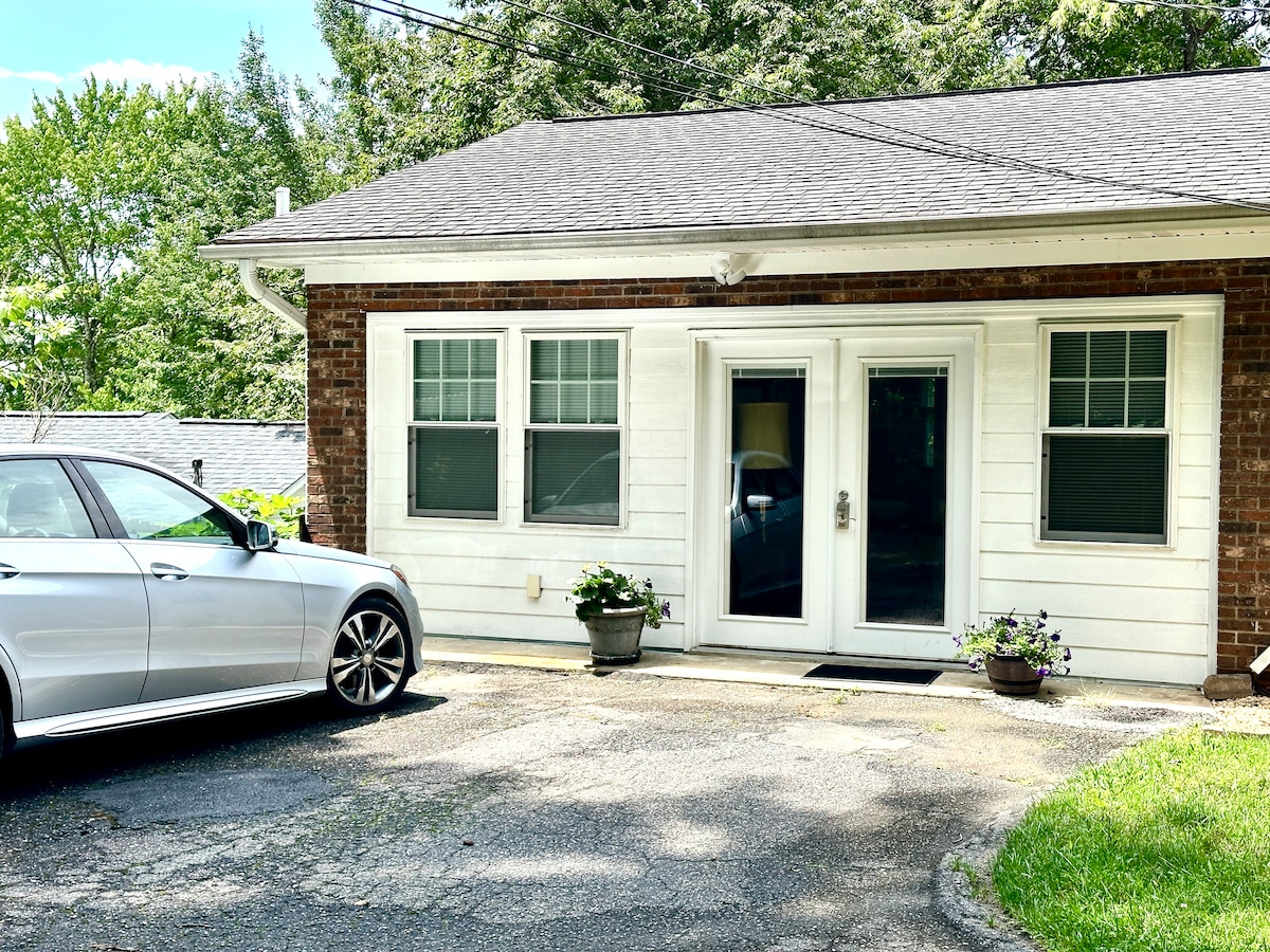 𖡼𖤣𖥧𖡼𓋼𖤣𖥧𓋼𓍊Private Luxe Bungalow Near Biltmore • Peaceful Stay A bright, stand-alone bungalow just 5 mins to downtown & a short walk to Biltmore Village. This spacious 720 sq ft king suite with 13-ft vaulted ceilings, custom finishes, and filtered water throughout. Ideal for a romantic getaway or a quiet retreat, enjoy total privacy, a keypad self-check-in, along with a covered patio for morning coffee or evening wine. Comfort, cleanliness, and calm.