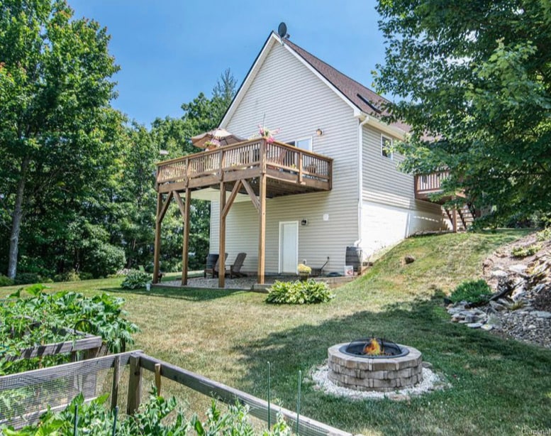 This unique and tranquil 13 sided round home offers luxurious living surrounded by nature. From the walnut breakfast bar to the oversized air jet tub, as well as the lush forest and mountain views, every slice of this pie exudes style, comfort, and serenity. Enjoyed best by those looking for an upscale, private getaway; something truly unique and special. Located 2.5 miles from the eastern edge of downtown and 3.5 miles from the Blue Ridge Parkway entrance and the nearest hiking trail.