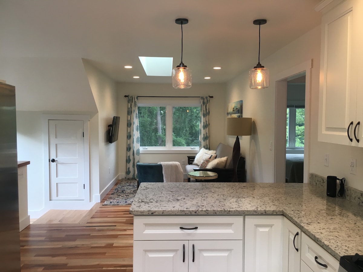 Chic Modern, Luxurious, Cozy-styled & Large private KING Bed & Barn view one-bedroom in-law apt. (1,050 sqft) w/ Fireplace. On 2 Beautiful Acres under towering trees, while only being 3 min.(1 mi) to the Biltmore Estate. 5-min. (4 mi) to the Heart of Downtown Asheville, NC; Blue Ridge Parkway, & South Slope DT breweries, coffee houses, and restaurants. Romantic, Quiet, Retreat Cottage, Nestled in Nature. A unique gem, close to it all