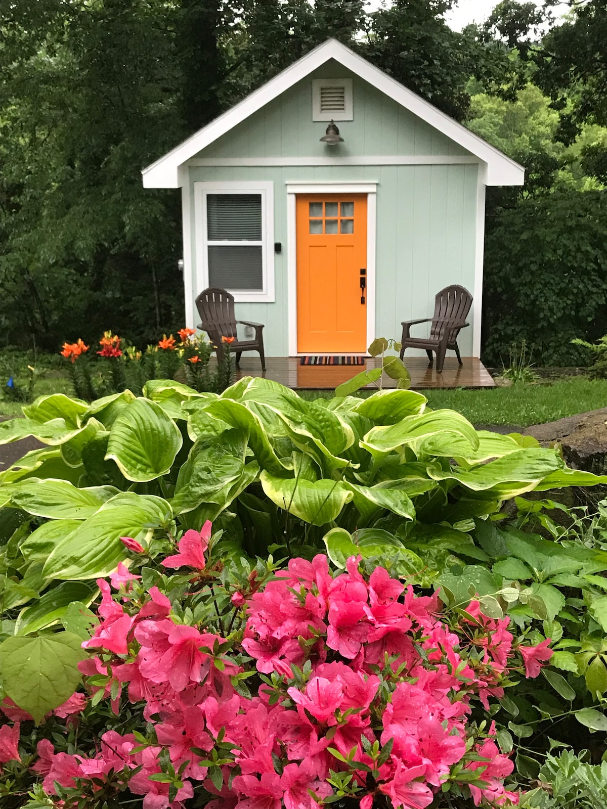 The tiny home is located in the scenic neighborhood of Haw Creek, tucked away in nature but only a 5-minute drive to downtown. The house is walking distance to Penny Cup Coffee and Creekside Taphouse, two local favorites. Large trees and wildlife abound in the backyard and can be viewed through the bedroom windows or from the brand new back porch. Inside, the tiny home has a modern yet rustic feel. You will find everything you need, and your host lives on the property and is just a text away.