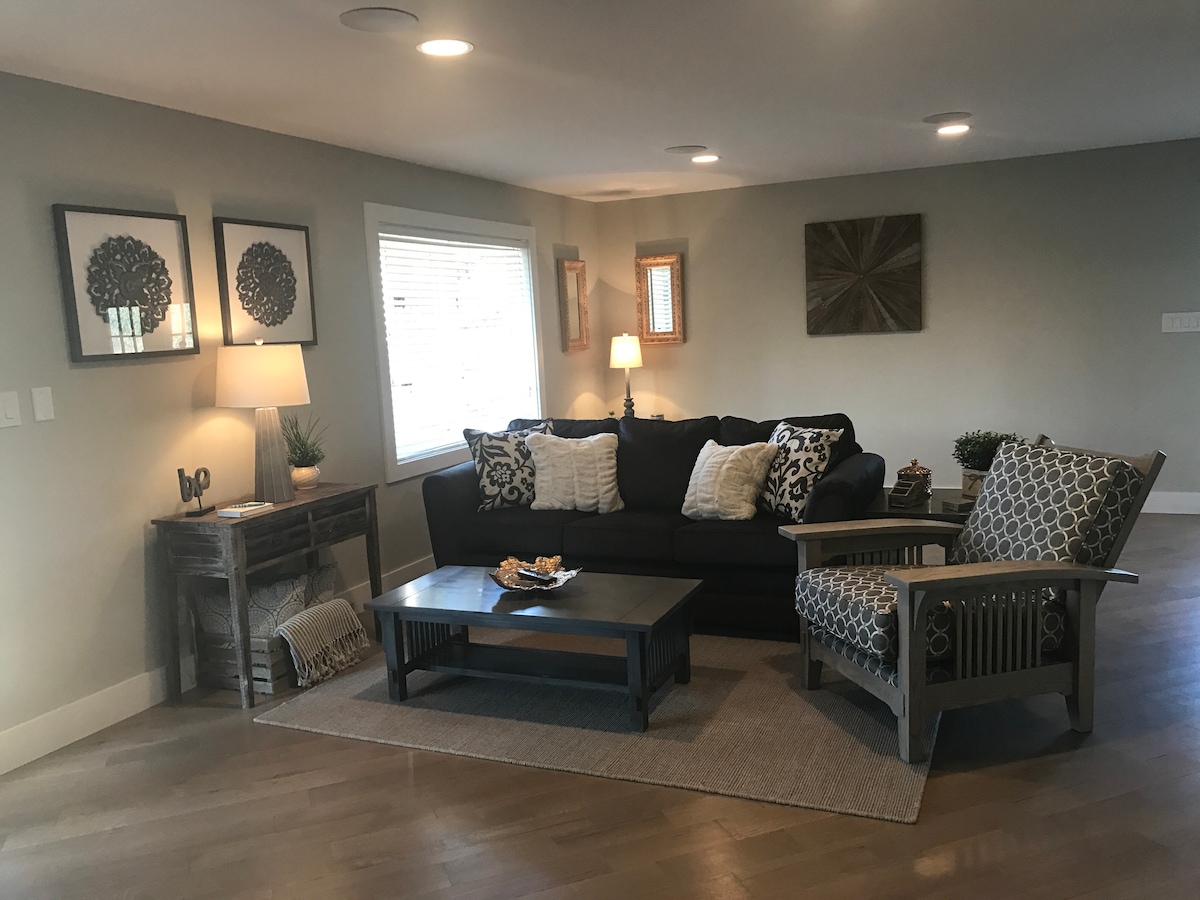 This is a new custom built log home. It has a wonderful Lodge feel with a hint of the West and South West. It has custom cabinets, granite counter tops, stainless steel appliances, new mattresses, a wonderful living room, with an electric fireplace and flat screen tv with Dish. The basement has a great living room area, and lots of things to do....Foosball, pool, ping pong, air hockey, etc. PLEASE, NO PETS. A violation fee will apply for non compliance.