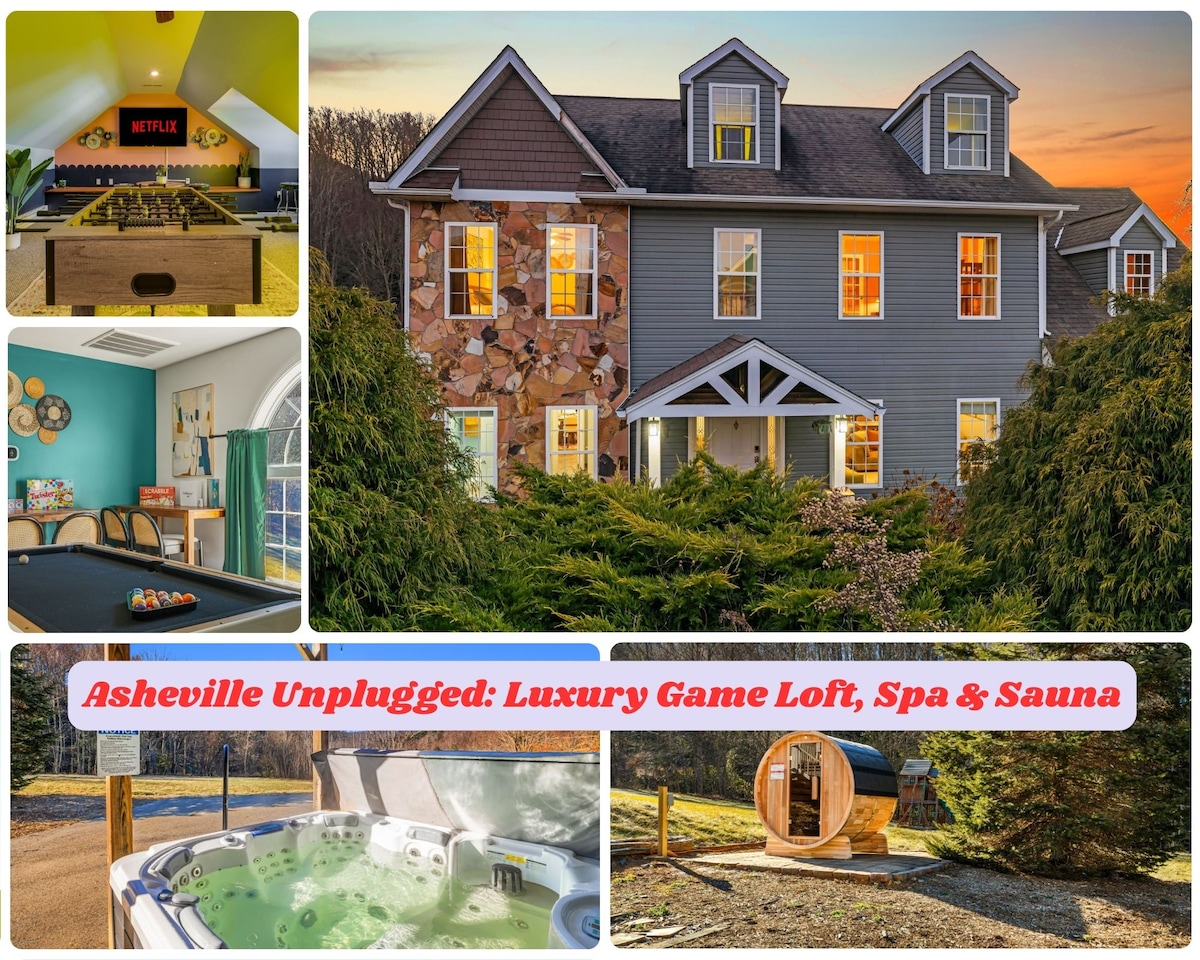 Where luxury + mountains meet! Explore the rugged & refined nature of Asheville from this new private vacation rental home, a perfect escape for a romantic getaway or small group gathering. Sophisticated style, luxurious comforts, hot tub, EV charger, fully equipped kitchen, wood-burning fire pit, 3 miles to the heart of downtown. Sip your morning coffee on either deck, take a drive on the Blue Ridge Parkway then head downtown for a drink at a brewery & return to the hot tub under the stars