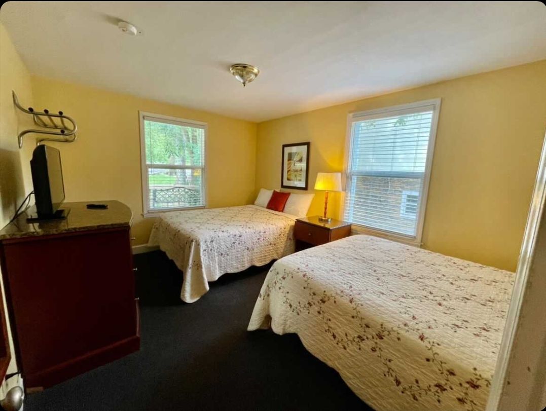 Room 401 offers 342 sq ft of comfort on the fourth floor, featuring a king bed and a queen pull-out sofa. Enjoy a tub and shower combo, smart TV, microwave, coffee maker, and refrigerator with freezer. Perfect for a cozy getaway, this room combines convenience and style for a relaxing stay.