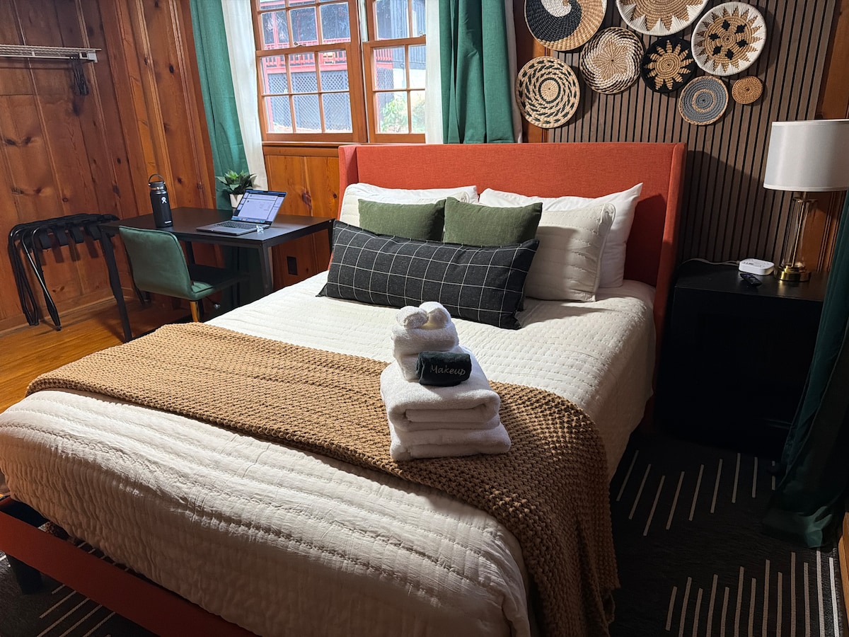 Stay steps from Asheville’s buzzing breweries, indie art galleries, and live music at Kimpton Hotel Arras. Your room blends boutique flair with luxe linens, spa-inspired bathrooms, and city or Blue Ridge Mountain views. Grab a cocktail at the lobby bar, hop on a complimentary bike to explore downtown, or soak up Asheville’s creative soul with your pup in tow. Warm Southern vibes, walkable adventures, and boutique perks make this the ultimate Asheville escape.