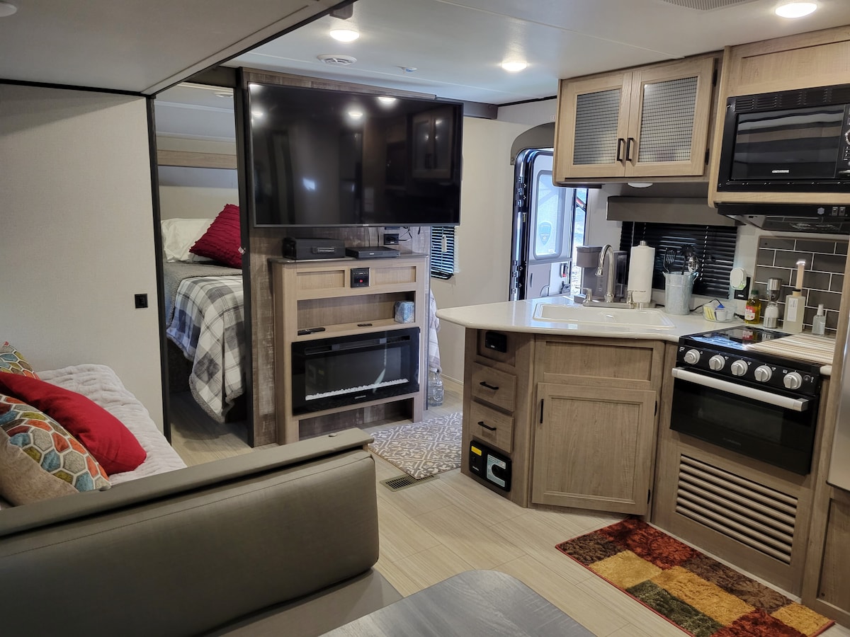 豪华清风房车,带热水浴缸、加大双人床和烤架