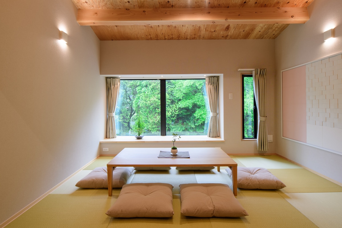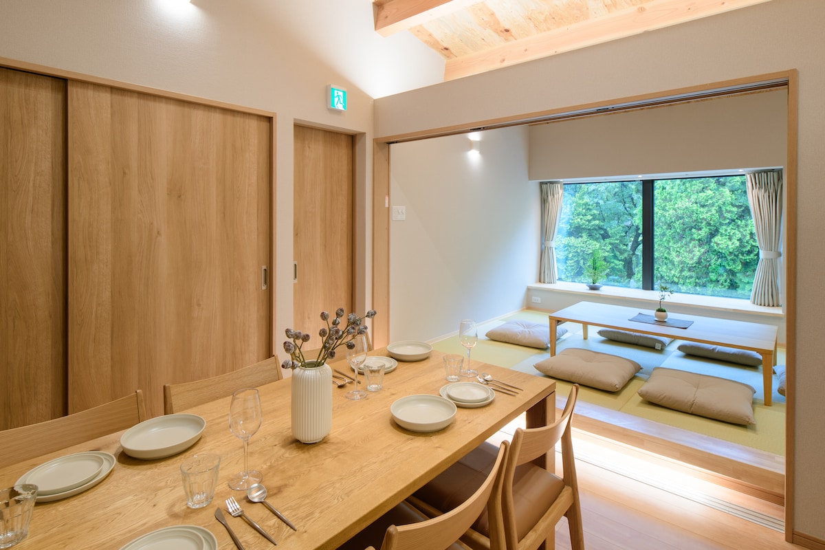 💰预订3晚及以上,可享受九折优惠! 清晨,在透过树林的阳光和鸟儿的鸣叫声中醒来。 当你打开窗户,呼吸着清新的空气,感受仙石原的大自然,四季交替上演着精彩的自然之戏。 结合了传统日本建筑之美和现代设计的整租别墅“相睦菴 Soubokuan”。 宽敞的165平方米4LDK日式现代空间最多可容纳10人。高高的天花板和横梁营造出印象深刻的客厅,提供适合大人数的舒适沙发区域。您可以使用大屏幕投影仪欣赏电影或听音乐。 设备齐全的厨房用具,与家人或朋友一起度过愉快的烹饪时光。在自然和谐的露台上,您可以尽情享受正宗的BBQ烧烤。附近有超市和肉店,购物也不成问题。 还提供Wi-Fi和滚筒洗衣机,非常适合远程度假办公或长期住宿。 前往热门的湯本、強羅和芦之湖等景区交通便利。周围有许多日归温泉,可以让身心得到放松。 我们为本施设的预订客人提供了可在箱根多家温泉设施中使用的优惠券。详细信息在您完成预订后通过入住指南为您说明。