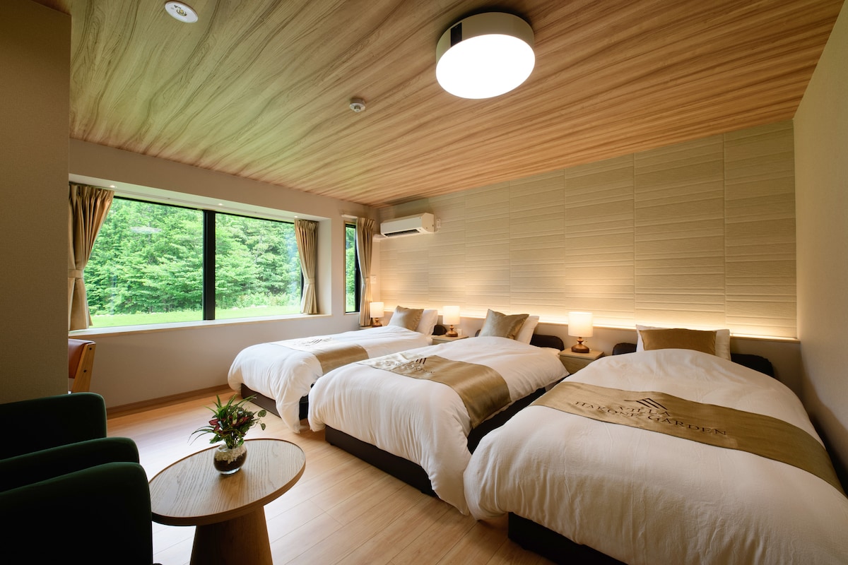 予約の取りにくい人気物件ですので、お気に入り登録をおすすめします! ■宿のご紹介 心地よいデザインと温泉の恵みが融合した宿へようこそ 周囲を木々に囲まれたプライベート空間で、家族やグループ旅行に最適です。 和室も完備しており、小さなお子様連れのご家族にも安心です。 BBQ・焚き火スペースが1Fピロティスペースにあり、自然に囲まれながらも雨の心配をすることなくお楽しみいただけます。サウナが直結しているので、そのまま汗を流しに向かい、湯上がりにまた風に当たることも可能です。 リビングスペースは床暖房完備のため、寒い時期でも快適にお過ごしいただけます。 ■主な設備 ・フルリノベーション:プロのデザイナーによる洗練された内装 ・温泉:美肌効果のある二ノ平温泉を堪能 ・BBQ設備:本格BBQグリルを完備 ・焚き火スペース:夜は焚き火を囲んでリラックス ・プロジェクター:大画面で映画を楽しめます ・サウナ & 水風呂:ロウリュ可能なサウナと水風呂完備 ・和室:畳の和室で和の雰囲気を堪能 ・子ども設備:ベビーチェア、子ども用食器、布団、おもちゃ等をご用意