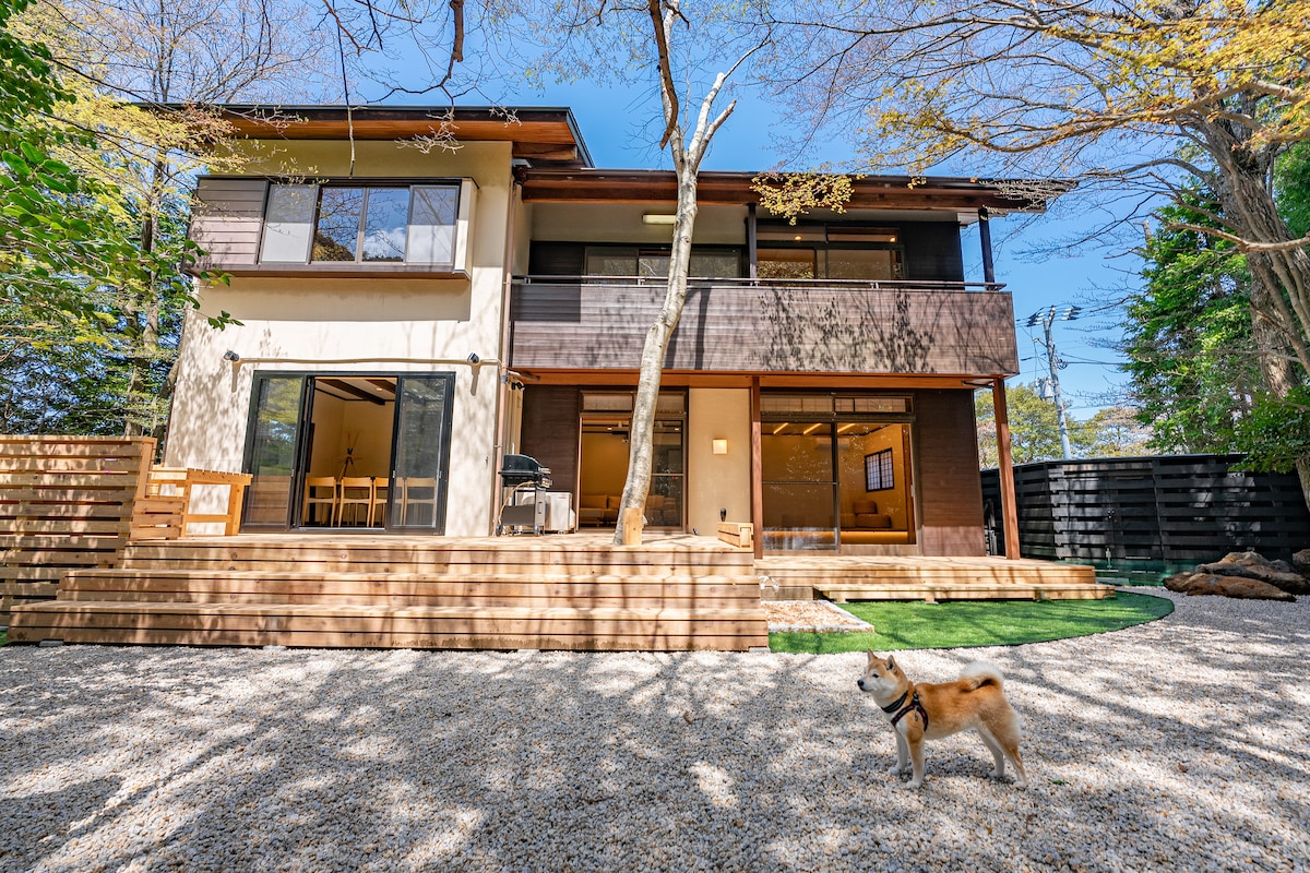 [91㎡+83㎡デッキ/サウナ付き別荘]BBQ|焚き火|最大10名|moon hakone/F101