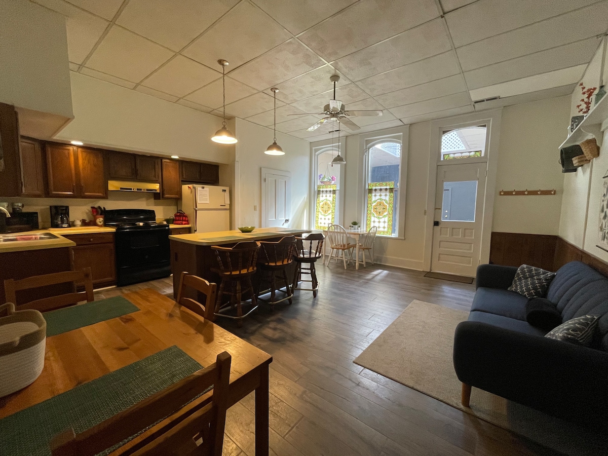 Your family will be close to everything when you stay at this centrally-located apartment walking distance to shops, restaurants, bike trail and the river. Also, less than a 10 min drive to Mohican State Park, Pleasant Hill lake, and Landoll's Castle. Enjoy staying above one of the oldest Hardware Stores in the country in this spacious apartment with well preserved vintage features with a mix of modern amenities. Be sure to grab a coffee at Stela's Coffee shop two doors down. No cats allowed
