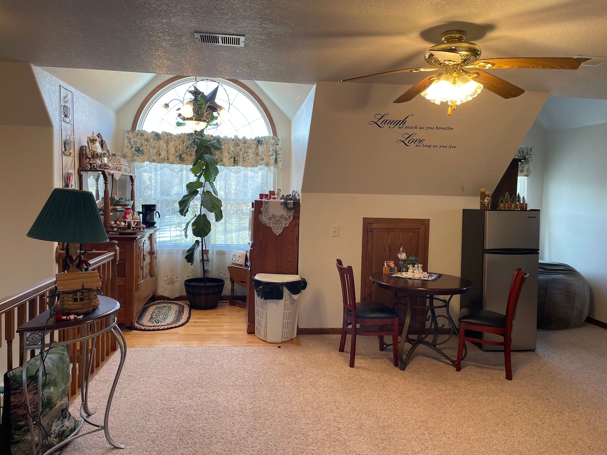 This century old farmhouse in the middle of town is the perfect accommodation for the solo business traveler or the friends & family visiting a college student! First floor is primarily office space, while 2nd floor hosts bedrooms and bathroom, & the best scene for miles awaits you on the 3rd floor living area. Unique & cozy decor, nearby highway, food, hiking, university, hospital, and business park. Clean and characteristic! Homeowner or staff sometimes present. No indoor smoking/pets