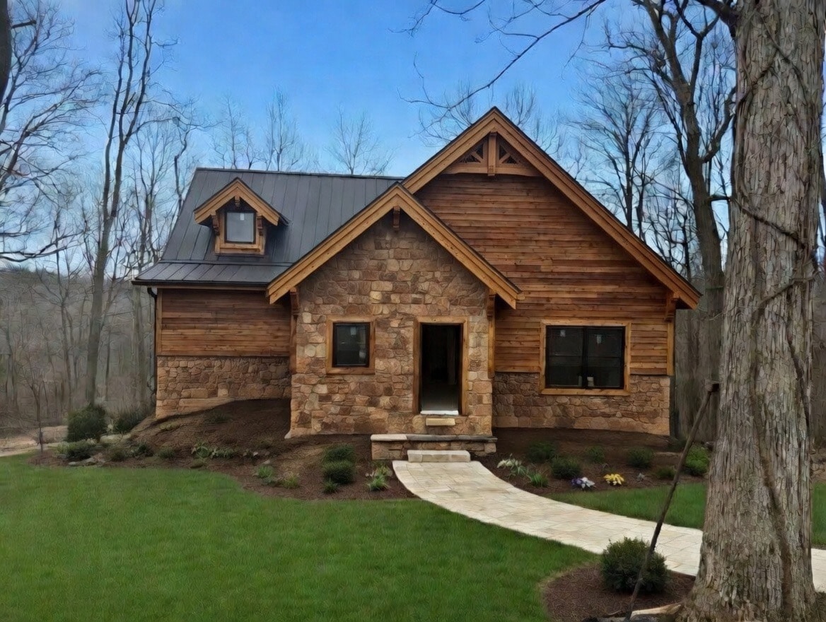莫希干州立公园小屋,带溪流和热水浴缸