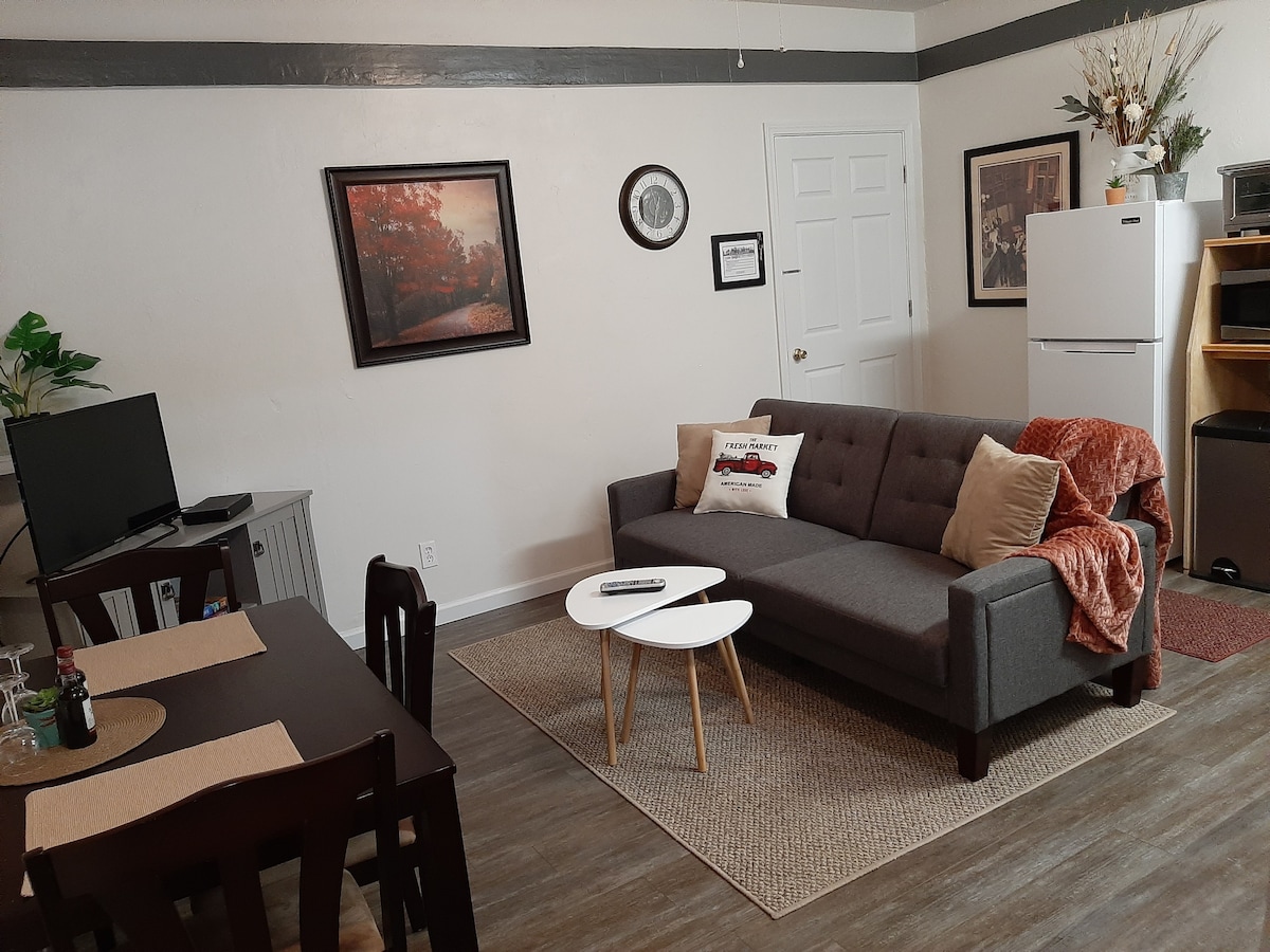 safe area, king bed,smart tv, 1.5 bath, love pets