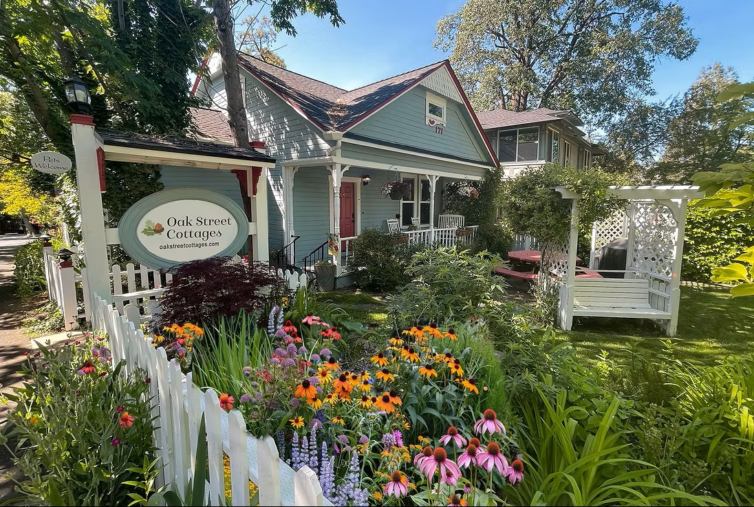 You will wake in the trees, to the soft prospects of the forested Siskiyou mountains to the west. You'll discover enchanting views at every window, from city streets to a quiet English garden and pond. You are only a few steps from Ashland Plaza, yet the retreat-like environment we offer to all our guests requires that no incense, smoking, vaping or pets are allowed in the Carriage House. The City of Ashland has authorized the Carriage House. Our City Planning Action Number is PA-2013-01701.