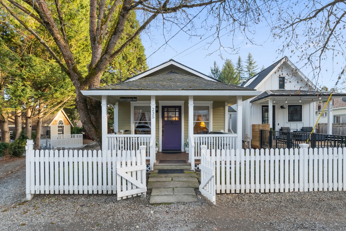 Charming Alley bungalow in the historic railroad district. Walk score of 93. Immerse yourself in the heart of Ashland. 5 min. walk to downtown, an easy 8 min. walk to Shakespeare & Cabaret Theaters. Walk to pubs, restaurants, coffee shops, spa's, markets, movie theater, Lithia Park, Japanese garden and trailheads all within 5-12 mins. Nice bike ride to wineries 15 min away, or a 30 min. drive to Mt. Ashland for skiing, hiking, biking and more adventures.