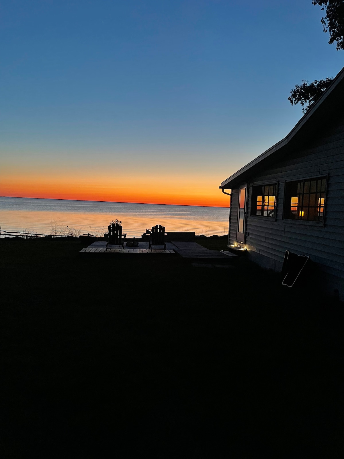 Jiffy's Journey is a beautiful lake side cottage features stunning sunset views over Green Bay. Outside, enjoy easy, private water access, beautiful deck, and the stunning sunset views of Green Bay. Inside, enjoy the bright, updated open floorplan, with views of the bay from every room in the house, even the bathrooms! Upstairs the entire floor is a giant master suite that will wow you! During the day, you're just a short drive from all that Door County has to offer! Pet friendly and no pet fees