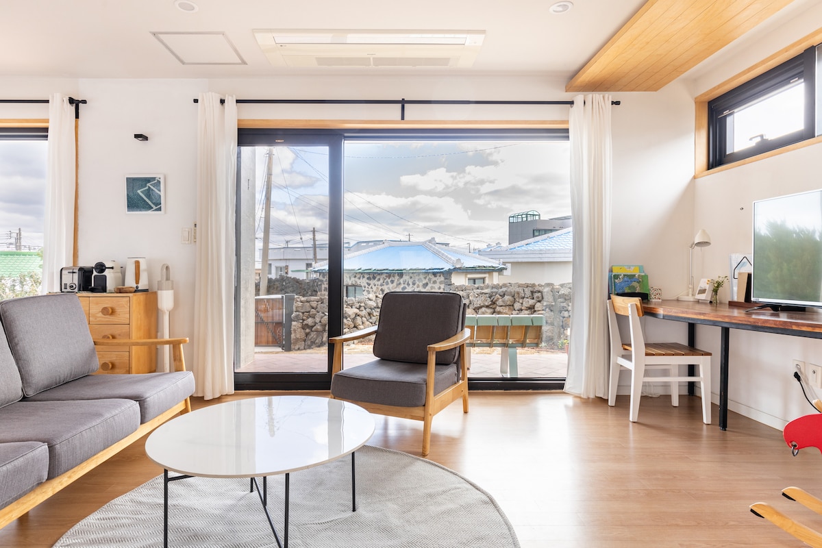 Very Jeju house is located a 3-minute walk from Woljeongri Beach. Leaving the bustling beach behind, you can take a leisurely stroll along the stone walls and find a house with a beautiful garden. It's the perfect place to experience various marine sports in the emerald beach and to spend wonderful times at fancy cafes or restaurants along the beach. The host prepares Very Jeju house for you meticulously with the hope that your stay will be a fond memory.