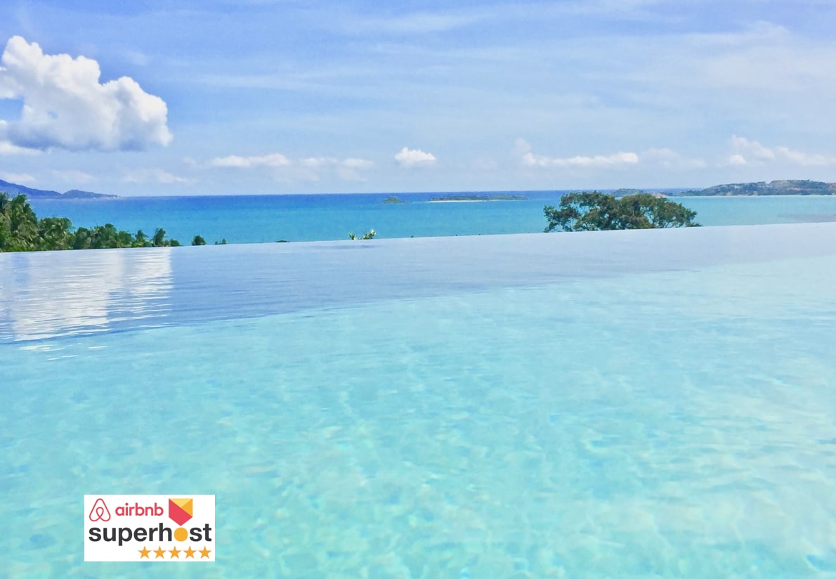 This luxurious LOFT SUPERHOST AIRBNB features 2 large in suite bedrooms and a private infinity pool ! Very well located in Bophut, on the island of Koh Samui, near the famous Fisherman' s Village, it offers an EXCEPTIONAL SEA VIEW from where we see the island of Koh Phangan. Very modern and spacious, the LOFT is perfectly equipped and can ideally accommodate one, two couples of adults or a family of 4 people. Optional, baskets service BREAKFAST directly at the LOFT !
