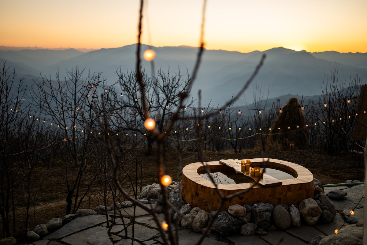 Glamoreo in Upper Shimla near Fagu sits within a peaceful apple orchard, surrounded by quiet mountain landscapes. Just 25 km from Shimla, it offers a private, offbeat escape. Enjoy a hot tub under the open sky, scenic forest walks, seasonal apple and cherry plucking, and the calming sounds of nature all around. Premium wooden interiors, organic food and dairy, along with a glimpse of rural life, perfect for slowing down, unwinding and experiencing calm in its purest form.