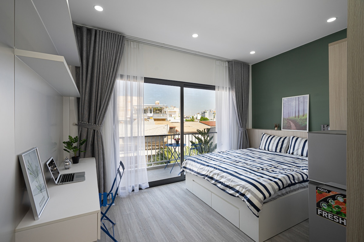 NamAn Stay in Saigon NamAn Stay is a smart, harmonious and professional serviced apartment building. All apartments at NamAn Stay have balconies, green view, making the most of natural light. After an enthusiastic working day, guests return to their small apartments with elegant colors, incense. fragrant soothing essential oil. The small kitchen and dining table are on the balcony so guests can cook comfortably without fear of bringing kitchen odors to the room.