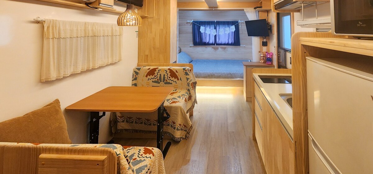 复古拖车和桶式桑拿“每日1组限定”的私人别墅