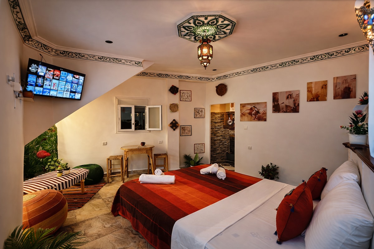 🧿 Welcome to Your Color of the Kasbah 🕌 Stay in the heart of Tangier’s Medina and enjoy our charming, Moroccan-style studio 🪔 with colorful details 🧡, a practical kitchenette 🫖, and a cozy private balcony 🌿. Just minutes from the Kasbah Museum 🏺, Grand Socco, and Petit Socco 🧭, it’s perfect for exploring local culture, markets, and history 📜 or simply relaxing after a day out. 🍞 Breakfast is included, except during Ramadan 🌙.