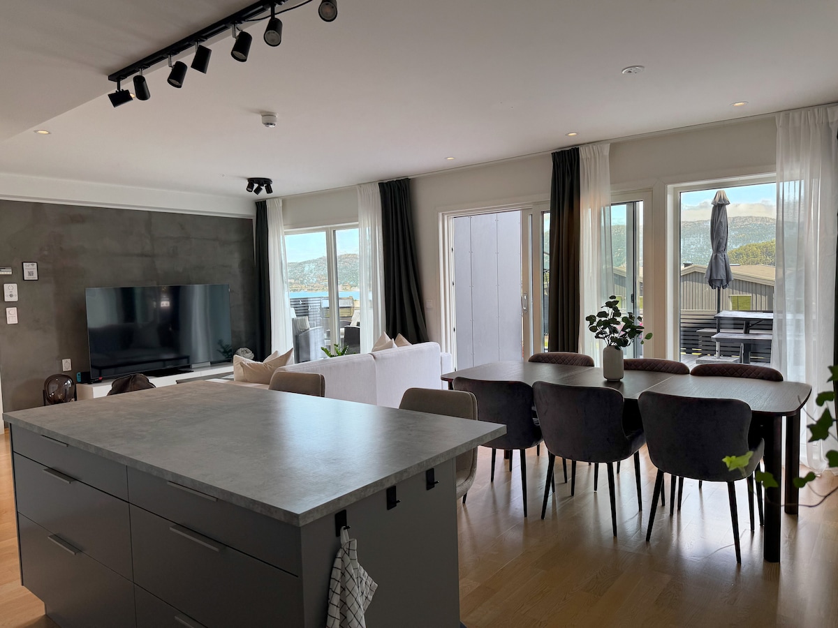 Velkommen til en moderne leilighet med nydelig utsikt over innseilingen til Bergen. Kort vei til Laksevåg senter, og hyppige bussavganger til Bergen sentrum (10 min). Nyt soloppgang og solnedgang fra privat balkong! Stedet: - To soverom (180x200 cm seng) - Velutstyrt kjøkken, med kjøleskap, frys, mikro, oppvaskmaskin, induksjonstopp og bakerovn. - Varmekabler i hele leiligheten! - TV og Internett - Privat parkeringspass med EL-billader - Vaskemaskin og tørketrommel - Rengjøring inkludert