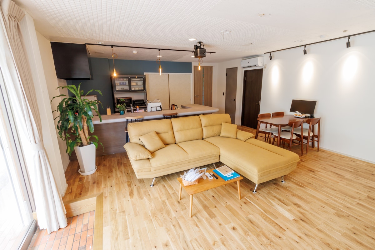 + Only minutes walk from BEPPU STATION and ONSEN!! + Free Parking lot is available + Modern Accommodation + "Cafe" Theme + Fast Wi-Fi + Western bedroom with 2 semidouble beds + Spacious LIVING ROOM with TV and 2Sofabeds + KITCHEN with safe IH stove and all cooking equipment + Clean & modern BATHROOM with Washlet (Japanese Smart Toilet) + Brand new spacious BATH (and shower) with Washer and Dryer + For groups of 2-6 guests