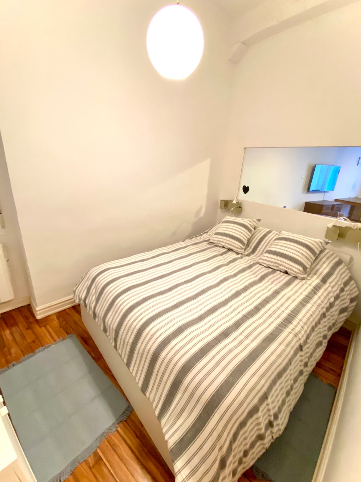 Coqueto apartamento situado en un barrio muy tranquilo a 2 pasos del Casco Viejo. El apartamento cuenta con 2 habitaciones con cama de matrimonio, una con ventana a la calle y la otra con ventanas a patio. Una salita con cocina americana y un balconcito. El cuarto de baño es amplio y el inhodoro está aparte. Nos hemos desvivido por presentaros un refugio luminoso y acogedor, arty y con encanto, apto para familias con niños, parejas y amigos. Aparcamiento gratuito fuera de las instalaciones.